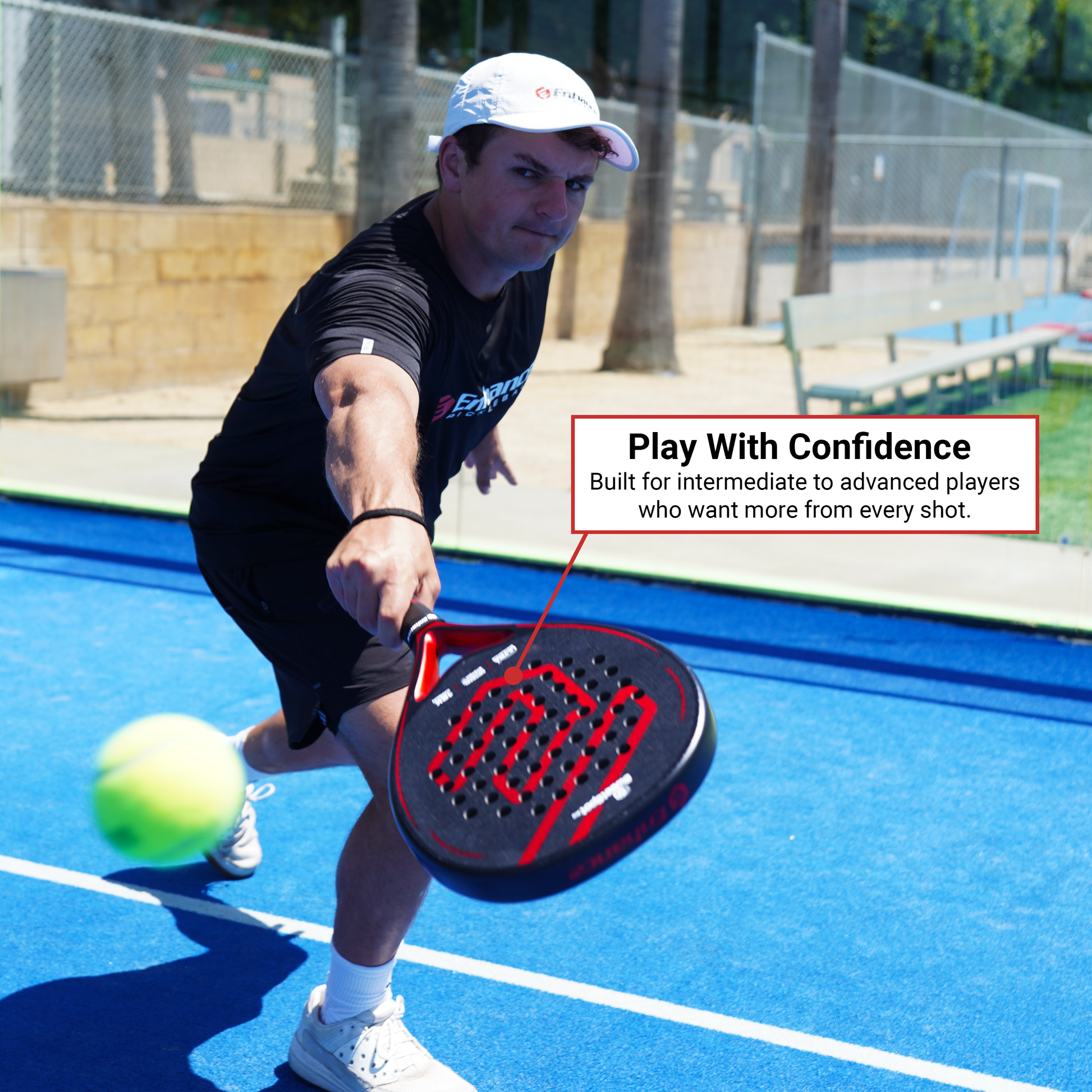 The textured carbon surface offers excellent grip on the ball, giving you the confidence to place drop shots, counter hard drives, and shape spin when needed. Every shot feels consistent, solid, and connected — exactly how a great paddle should.